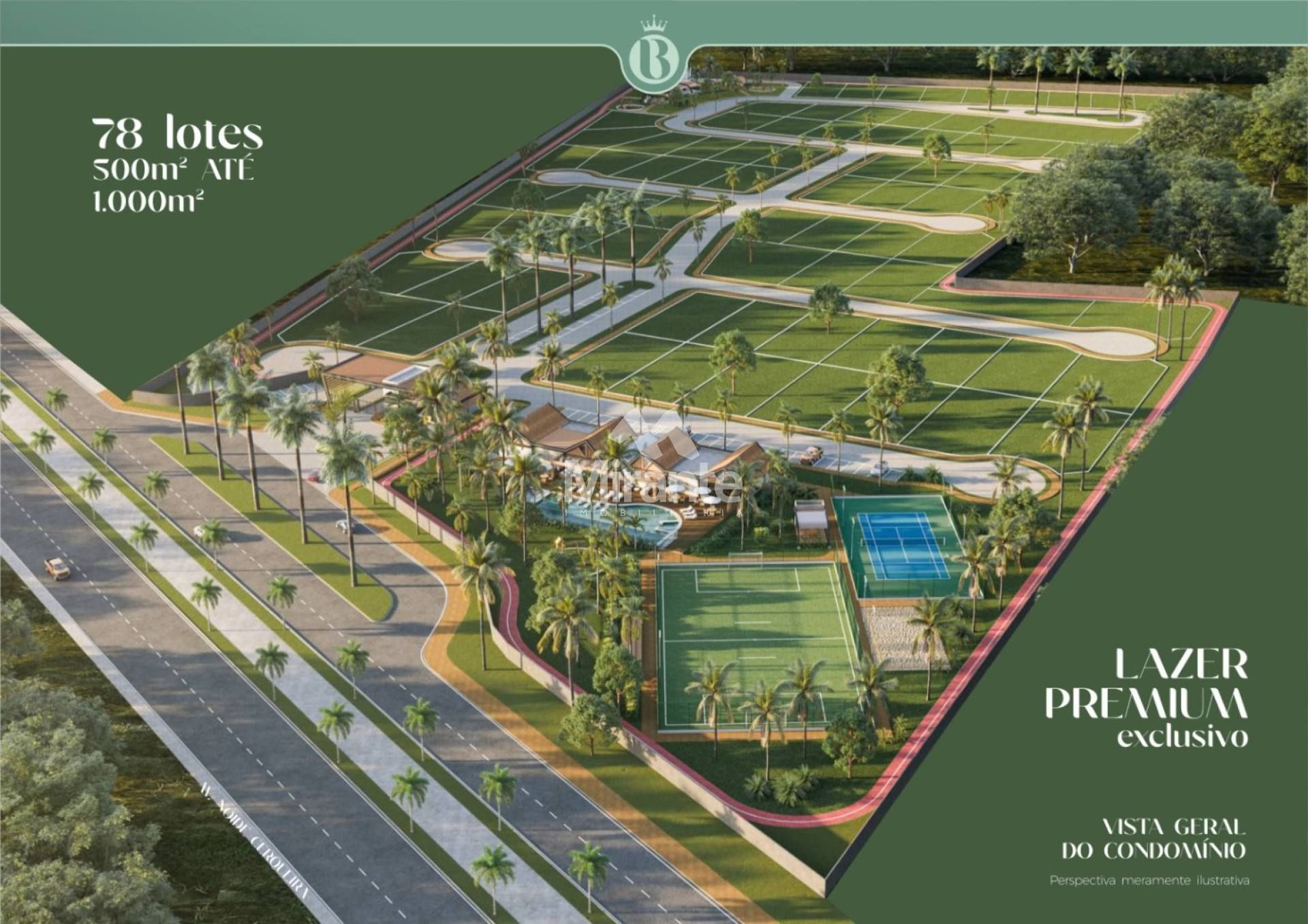 Condomínio com apenas 78 lotes residenciais, ruas largas e bastante arborizado.